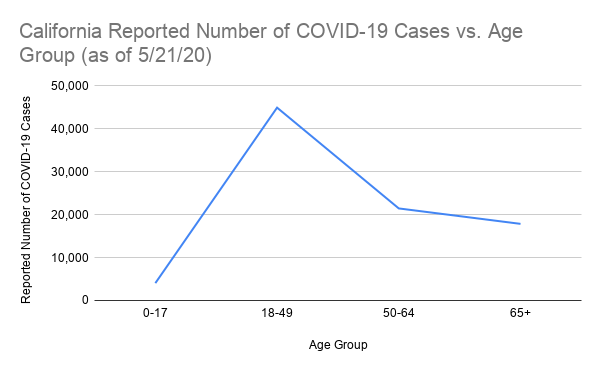 However, if we look at the data on which age groups are most affected by COVID-19, we see a much different picture. In California, as of 5/21/20, the age group with the largest number of confirmed infections is people 18-49 years of age, with 44,953 infections, compared to 21,461 people 50-64 and 17,864 people 65 and up. The 0-17 age group has 4,049 cases. (Incidentally, the 0-17 age group is also the least-tested group.) We know that 7,908 of those 65+ folks are residents in skilled nursing facilities are infected with COVID-19, so when you take those folks out of the equation, there are only 9,956 other people over the age of 65 infected in California. Deaths in skilled nursing facilities make up 39.5% of the COVID-19 deaths in California. The point is that people over 65 who are not in skilled nursing facilities are not getting infected at the same rate as younger people. Now, it might be a coincidence, but we can’t help noticing that the two age groups that we have essentially mandated stay home since mid-March (school-aged children and senior citizens) have the lowest numbers of infections. Perhaps preventing infections is not as complicated as folks are making it out to be.