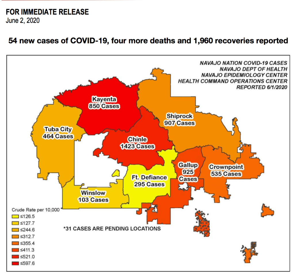 Navajo Nation COVID-19 Data as of 6/2/2020.
