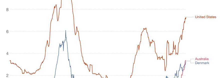 As of 2/11/22, California was ranked 39th in infection percentage at 22.69%. In California 18.99% of Californians were infected in the last 15 months. As of 2/24/22 forty-three states have had greater than 20% of their population infected. Rhode Island was at 33.55% (ranked #1), Alaska was at 31.55% (ranked #2),North Dakota was at 31.20% (ranked #3), Tennessee was at 29.91% (ranked #4), Utah was at 28.75% (ranked #5) and Florida was at 27.21% (ranked #9) of their population infected. All 50 states and the District of Columbia now have greater than 16% of their population infected. The table below shows that if we rank the US states with the highest death rates per million population within the world rankings, we see that Mississippi, Arizona, Alabama and New Jersey have the eighth highest COVID-19 deaths per million in the world. Massachusetts, Arkansas and New York tied at tenth, Louisiana is at 11th and Rhode Island and Florida tied at 13th. The United States as a whole ranks 18th in the world for deaths per million population (2,907 deaths per million). California ranks 40th in the USA (and 38th in the world). If we look at the death rates per million in South Korea (152), Iceland (177), Japan (181), and Israel (1,084), they suggest that treatment outcomes are somehow different in these four countries. The same phenomenon can be seen in Scandinavia, where the death rate in Sweden is 1,677 per million, compared to 291 per million in Norway and 426 per million in Finland. The United States should have taken a closer look at how countries with low death rates (like South Korea, Iceland, Japan, Finland, and Norway) are preventing COVID-19 infections and treating COVID-19 patients.