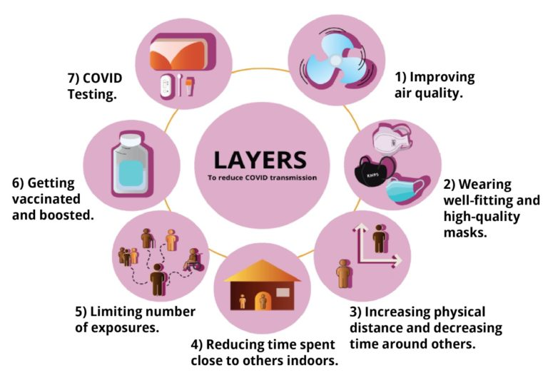 - If you have school-aged children, advocate for masking and clean air in your child’s school